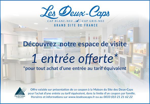 Le Département du Pas-de-Calais et ses partenaires vous proposent une immersion originale au cœur du Grand Site de France Les Deux-Caps sur plus de 250 m2 d’un parcours interactif et ludique : jeux, tablettes, découverte des patrimoines naturel, historique, traditionnel… Des vidéos et des photos vous feront voyager le long de ses 30 km de littoral… Une expérience à vivre en famille !